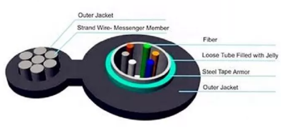 In the GYTC8S/GYTC8A cable, single-mode/multimode fibers are positioned in the loose tubes, while the loose tubes strand together around metallic central strength member into a compact and circular cable core, and the water-blocking materials are distributed into interstices of it. After a PSP/APL is applied around the cable core, this part of cable accompanied with the stranded wires as the supporting part are completed with a PE sheath to be a figure-8 structure.